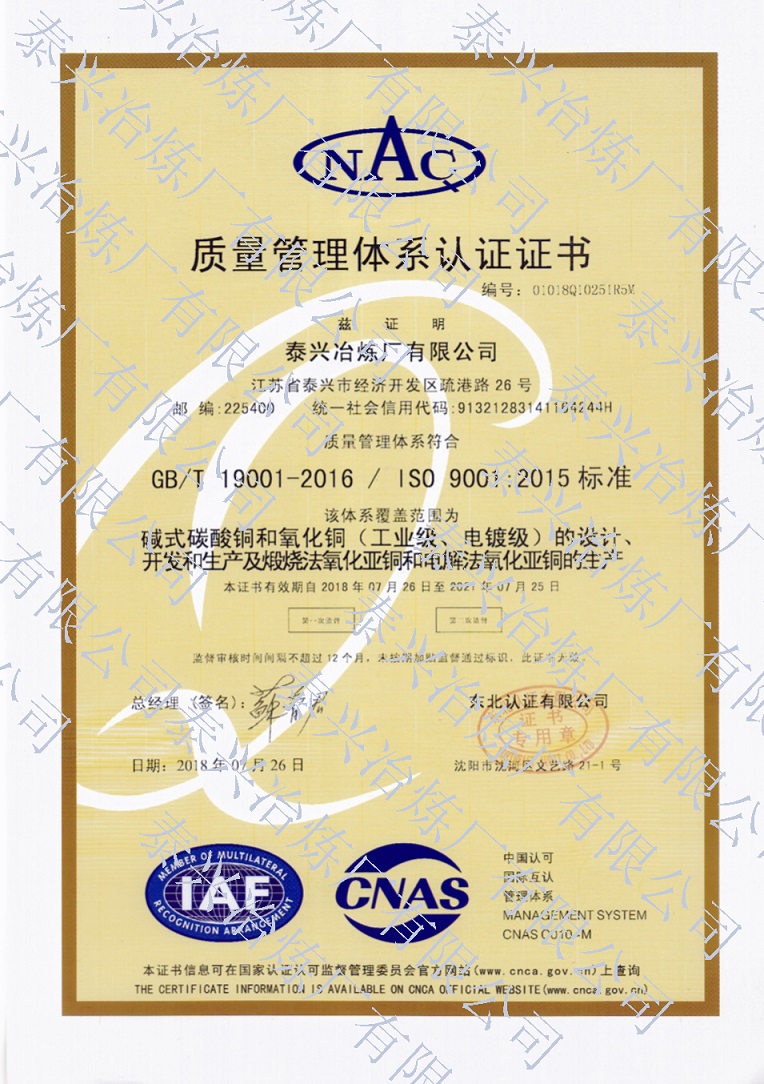 是我國《工業氧化亞銅》、《工業堿式碳酸銅》、《工業活性氧化銅》行業標準的起草單位